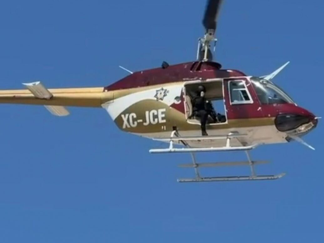 Como parte del dispositivo de seguridad, uno de los helicópteros de la corporación lleva a cabo recorridos desde el aire, con la finalidad de reforzar las acciones implementadas en tierra y ampliar la cobertura de vigilancia.